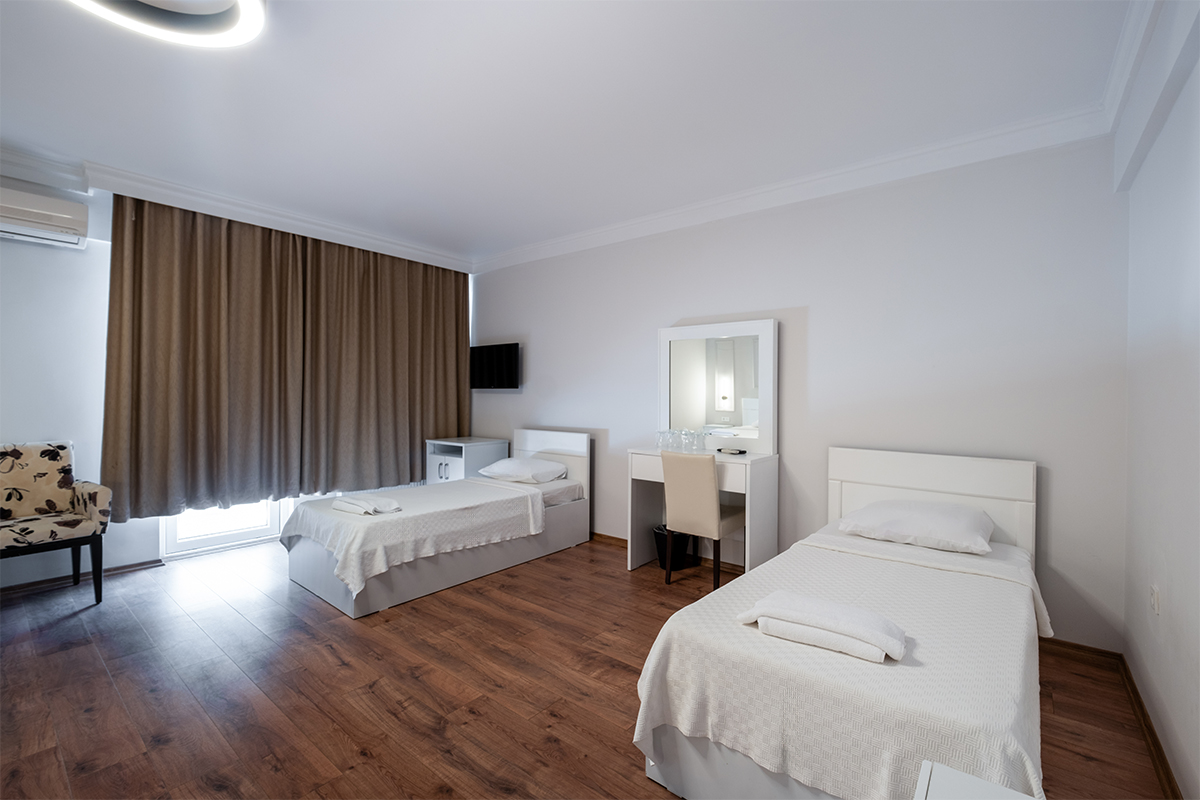 Dört Kişilik Odalarımız, birlikte konaklayan aileler ve küçük gruplar için konforlu ve işlevsel bir seçenek sunar.
